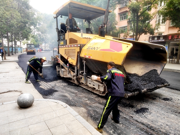 彩虹路地下管網改造完工后,對路面實施瀝青攤鋪。