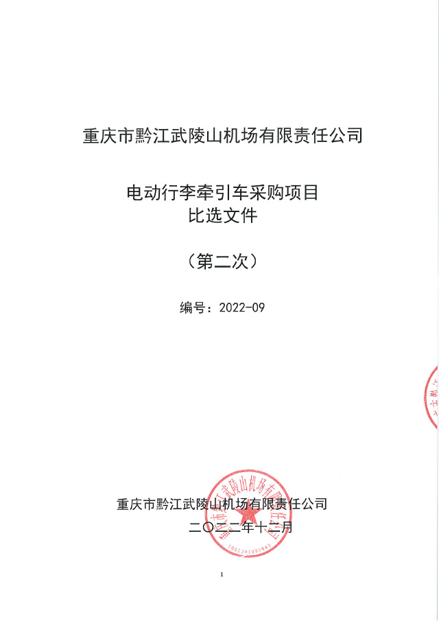 重慶市黔江武陵山機場有限責任公司電動行李牽引車采購項目比選文件(第二次)