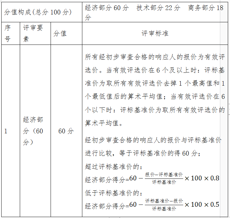 本次比選采取綜合評分法。在經過初步審查后對符合本文件基本要求的比選響應人進行詳細評審,總得分為經濟、技術、商務三種評定因素分別按照相應分值計算分項得分后相加,滿分為100分,比選響應人得分最高的作為成交候選人。評分辦法如下: