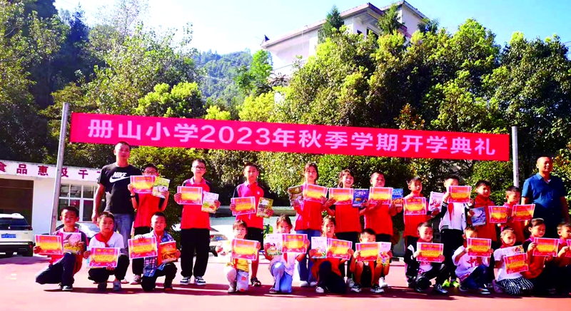 冊山小學給優(yōu)秀學生頒獎。