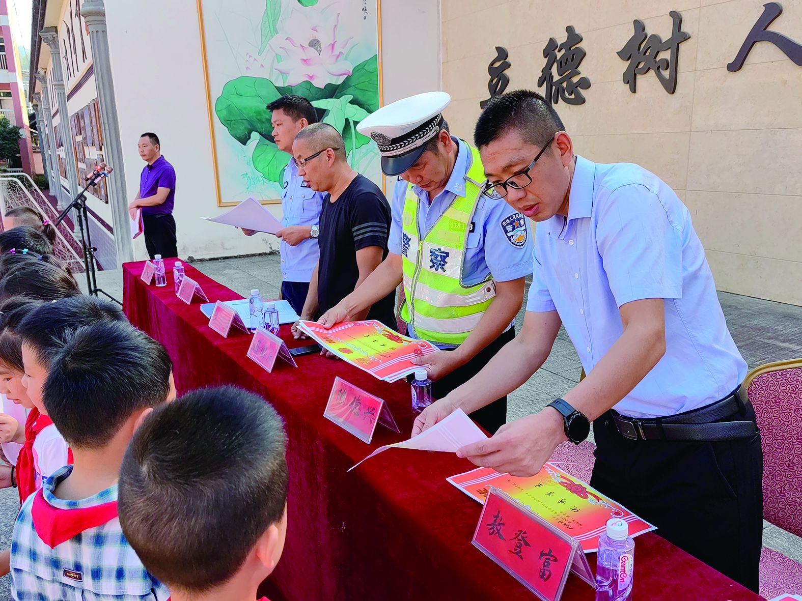 當天,教師和學生代表先后進行了表態發言。學校對優秀學生進行了表彰,鼓勵他們再接再厲,取得更好成績。中塘鎮派出所所長文紹祿帶來法治知識講座,交警一大隊警官陳德興帶來交通安全課,在寓教于樂中,同學們獲得了法治及交通安全知識。