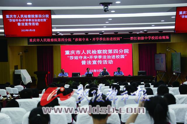 本報訊(記者 王巧西 文/圖)9月6日,市檢察院第四分院與區檢察院的“莎姐”檢察官來到黔江初級中學開展送法進校園活動(如圖),為學生們講解法律知識,增強學生的自我防范意識。