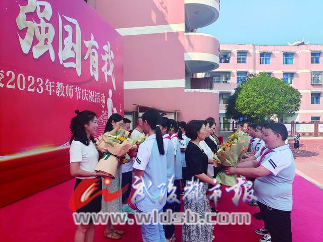 40名學(xué)生向參會(huì)教職工敬獻(xiàn)鮮花,祝福老師節(jié)日快樂,隨后對在2022——2023學(xué)年度中為學(xué)校工作做出突出貢獻(xiàn)的冉飛等9名“優(yōu)秀教師”、 侯小占等4名“優(yōu)秀教育工作者”予以表彰。