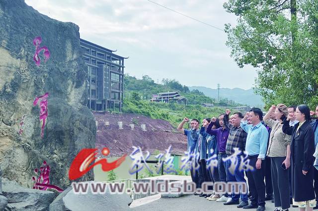 志愿服務結束后,全體黨員來到濯水社區“紅軍渡”渡口,重溫入黨誓詞(如上圖),并聽取當年賀龍元帥率領紅三軍在阿蓬江“黃泥沱”處需要渡河,當地船工自愿組織船隊,安全將紅軍和戰馬送過阿蓬江的歷史事跡。