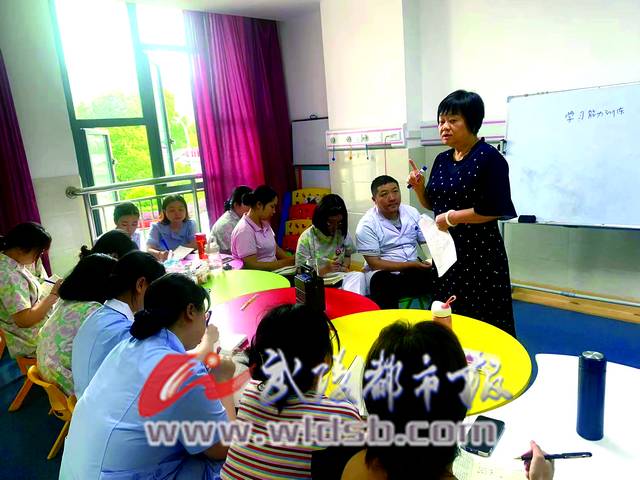 近日,記者在該院兒保科的“名醫(yī)工作室”看到,兒科專家甘文玲正耐心地指導科室的醫(yī)護人員,應如何有效的與孤獨癥患者交流,并找出具體病例和大家探討(如圖)。