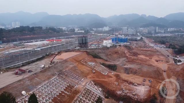 在渝湘高鐵黔江站綜合交通樞紐工程建設現場,數十臺大型施工機械來回穿梭,正在抓緊開挖土石方,進行場坪和樁基施工。