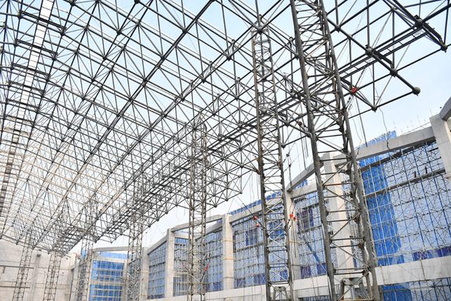 作為成渝地區(qū)雙城經(jīng)濟(jì)圈重大項(xiàng)目,渝湘高鐵重慶至黔江段沿線共設(shè)8座車站,黔江站站房建筑面積1.5萬平方米,候車大廳屋頂采用焊接球鋼網(wǎng)架,最大跨度達(dá)到127米,網(wǎng)架部分凈高為2.7米左右,是全線建筑面積最大的車站。由于鋼網(wǎng)架縱橫向跨度大,構(gòu)件材料多,建設(shè)者們根據(jù)站房主體結(jié)構(gòu)特點(diǎn),嚴(yán)格把控材料和供需,采用成熟技術(shù)進(jìn)行調(diào)試、頂升和加固作業(yè),大大降低了施工難度。