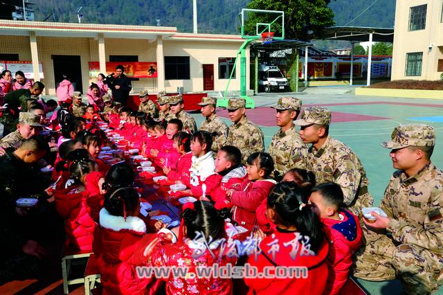 當天,在老師的帶領下,小朋友們有序走進營區(qū)大門,武警戰(zhàn)士們以整齊的隊伍、莊嚴的軍裝迎接大家的到來。小朋友們給武警戰(zhàn)士們帶來了《成語祝新年》《功夫?qū)殞殹返染实墓?jié)目,贏得大家陣陣掌聲。