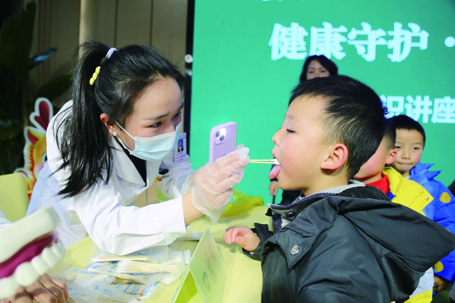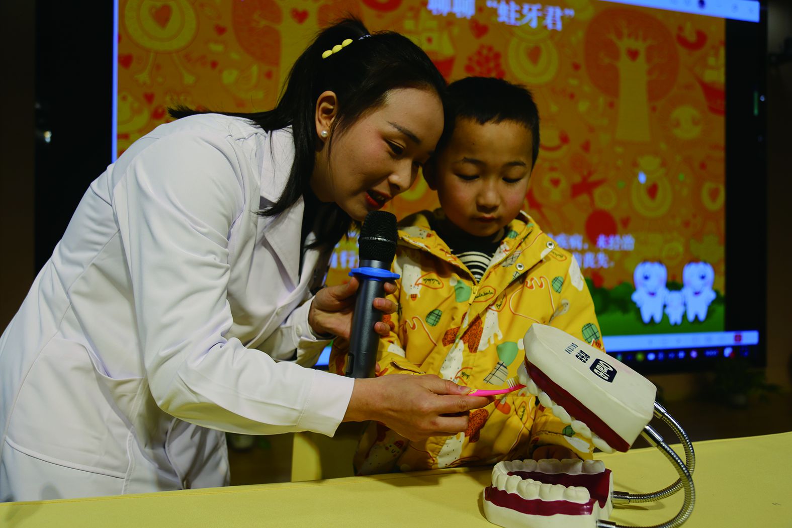 在活動現場,醫務人員以《眼睛的秘密》《小口腔 大健康》為題,給孩子們普及了如何科學用眼、愛護口腔的小知識。