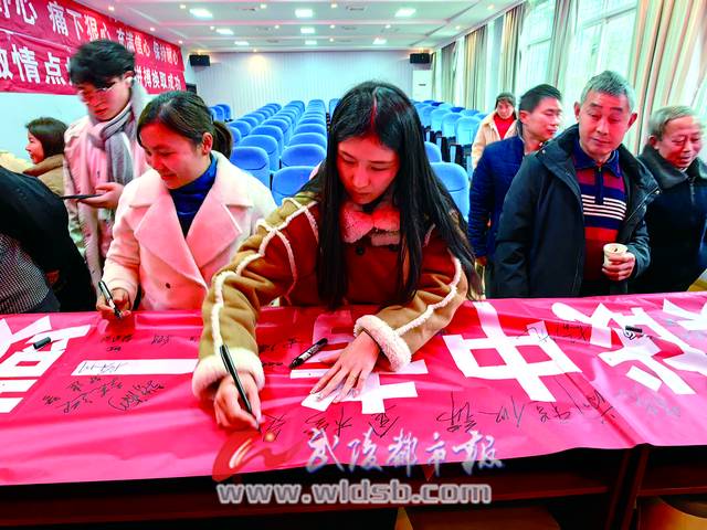 當天,學校運動場上,鼓聲喧天,“戰旗”飄飄,人聲沸騰。參加今年中考的九年級18個班的809名學生,在各班班主任的帶領下,豪情萬丈、神采飛揚地從“沖刺門”沖進“狀元門”。學校領導、老師及學生家長,列隊在沖刺門、狀元門兩旁,一手揮舞小紅旗、一手拿著鮮花,等候喜迎孩子抵達向往走進的狀元門,然后在宣誓欄上自信地簽下自己的姓名,發誓“不畏困難、尋找方法、堅持不懈、決勝中考。”