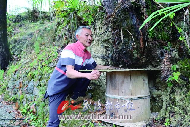 喂養(yǎng)蜜蜂是以前謝太平家的副業(yè),他利用房前屋后的巖穴和大樹下面的空檔,放置一些蜂桶讓蜜蜂自己往里鉆,抱著能收入多少算多少的心態(tài)。遇到蜜蜂分桶,他也沒時間去經管,所以蜜蜂的數量也就一直增不起來。只是近幾年,謝太平才開始對養(yǎng)蜂重視起來。