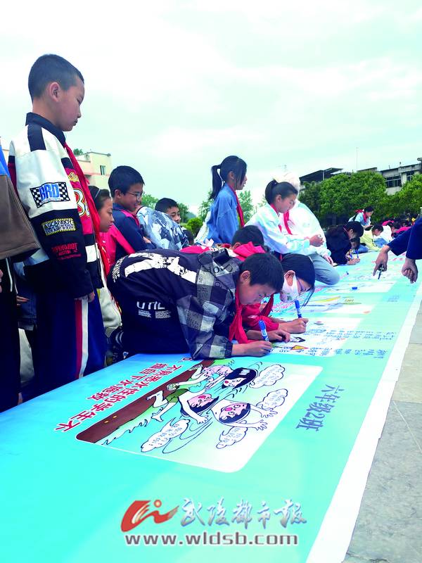 活動最后,全校學生及班主任在“預防溺水安全教育”橫幅上簽下自己姓名(如下圖)。