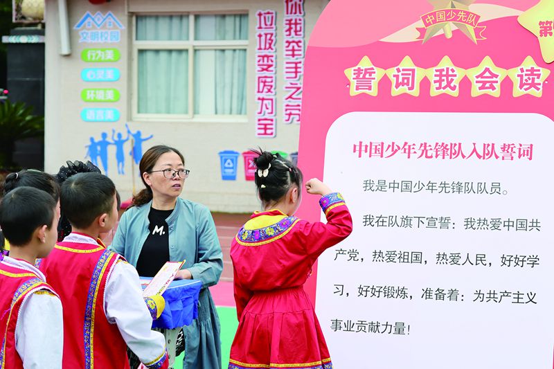 本報訊(記者 楊念 文/圖)為了教育引導廣大少先隊員堅定理想信念,聽黨話、感黨恩、跟黨走,5月23日,黔江區民族小學開展了以“童心向黨立志向,入隊闖關促成長”為主題的少先隊知識大闖關活動。此次活動旨在幫助預備隊員更好地認識少先隊組織,學習少先隊精神,繼承少先隊光榮傳統,傳承紅色基因,增強少先隊員的光榮感、自豪感、歸屬感。
