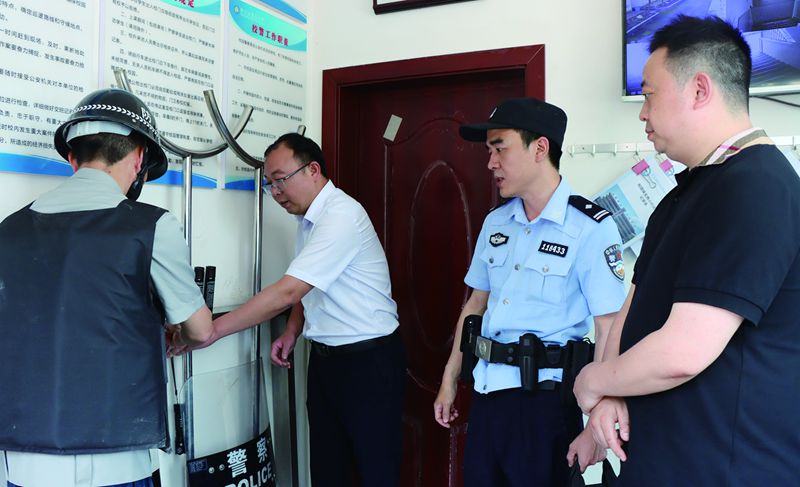 當(dāng)天,“警保聯(lián)動(dòng)”一行人來(lái)到黑溪中學(xué),對(duì)學(xué)校安全隱患排查、安保力量檢驗(yàn)、校園門(mén)口護(hù)學(xué)進(jìn)行“大摸底”,重點(diǎn)落實(shí)學(xué)校“人防、物防、技防”措施,對(duì)學(xué)校安保人員巡查制度、安保器材配備、登記備案制度、安保人員培訓(xùn)以及日常管理等情況逐項(xiàng)進(jìn)行檢查,督促學(xué)校安保人員要加強(qiáng)業(yè)務(wù)水平提升,全面加強(qiáng)安保隊(duì)伍規(guī)范化、職業(yè)化建設(shè)。同時(shí),進(jìn)一步強(qiáng)化安保隊(duì)伍日常管理工作,加強(qiáng)紀(jì)律規(guī)范,增強(qiáng)服務(wù)意識(shí),提升服務(wù)質(zhì)量,規(guī)范安保人員執(zhí)勤行為。且要定期加強(qiáng)消防、防爆、反恐等突發(fā)事件處置預(yù)案演練,增強(qiáng)安保人員防范意識(shí),全面提高安保隊(duì)伍整體素質(zhì)。