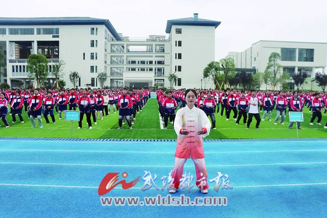 雙臂抬起、掌心外旋、俯首攀足、穩扎馬步……動作似行云流水、整齊劃一、自然灑脫、協調優美,區中醫院醫護人員和武陵初級中學師生一起,把八段錦動靜相兼、舒展柔和、圓和連貫等功法特點演繹得淋漓盡致。