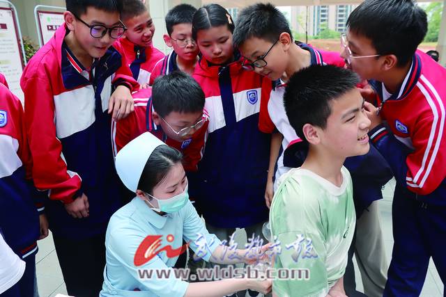 “同學們,你們知道耳穴壓丸的作用嗎?有沒有同學知道答案?答對有獎品喲!”話音未落,同學們便爭先恐后舉手回答問題。在區中醫院醫護人員的指導下,同學們認真體驗拔罐、刮痧、耳穴壓丸。