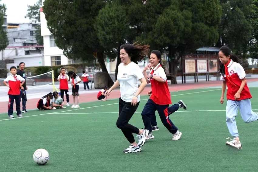 2017年,村小撤并到馬喇鎮中心小學校。在學校支持下,她組建了馬喇鎮第一支校園足球隊。最初孩子家長不愿意孩子參加,她一個一個做通了工作。后來,楊淵組建的這支校園足球隊,由她當業余教練。2018年,她帶著孩子們第一次參加區級聯賽,成功晉級決賽,獲得了區級聯賽亞軍。