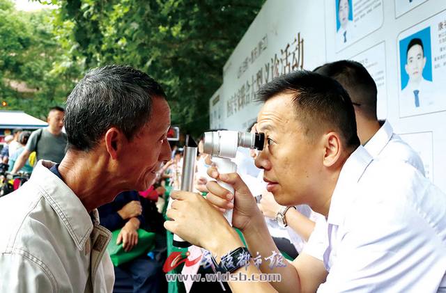 眼科專家給老人檢查眼病