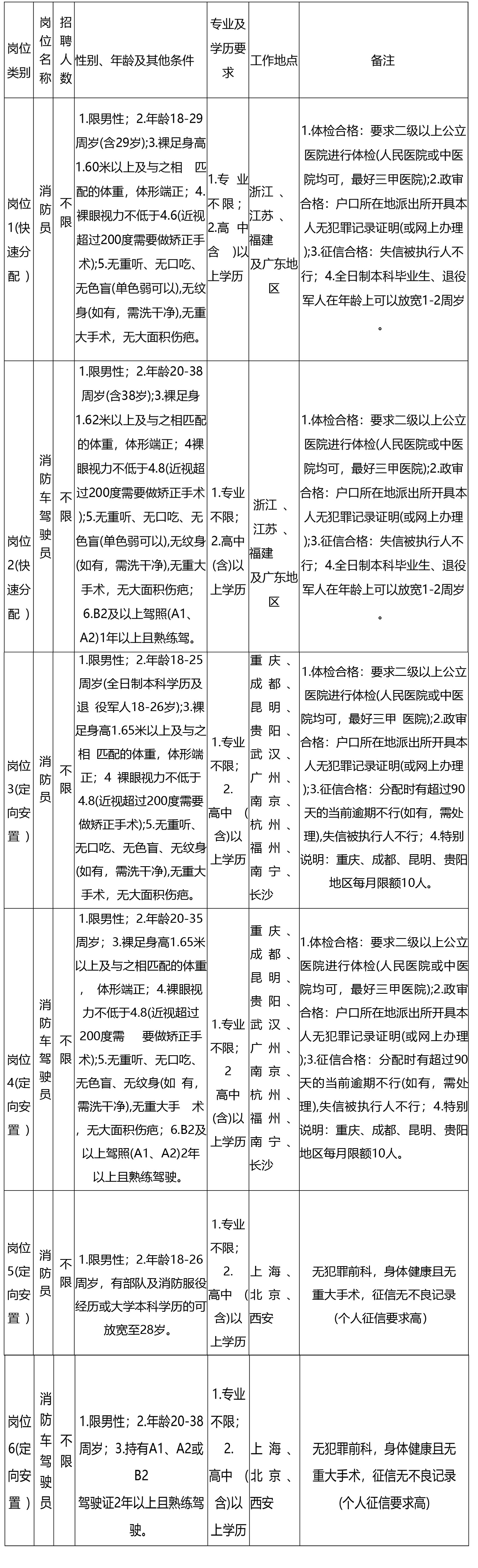 1. 應聘人員須熱愛消防事業,愿意從事消防員及消防車駕駛員工作。報考動機不純、隨時可能棄考、不珍惜消防工作隨意離職的,請慎重考慮后再報考。