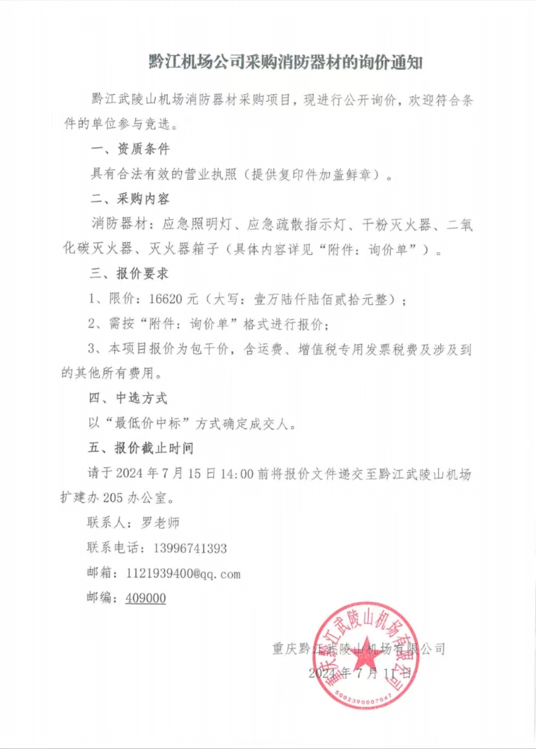 黔江機(jī)場(chǎng)公司采購(gòu)消防器材的詢價(jià)通知