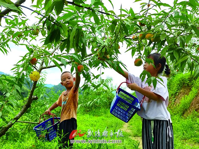 正在采摘黃桃的市民邱祖秀告訴記者:“趁著今年第一批黃桃熟了,帶著小孩來體驗采摘的樂趣,孩子們都很高興。”