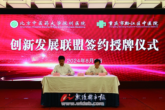黔江區相關負責人表示,長期以來,黔江區委區政府高度重視中醫藥事業發展,依托全市唯一的國家公立醫院改革與高質量發展示范項目,不斷擴大中醫藥在疾病治療中的優勢,建成國家級中醫特色重點專科1個、市級中醫重點專科7個,云集60 余項中醫特色服務技術,全區基層醫療衛生機構中醫館全覆蓋,四個次中心中醫館全面提檔升級,中醫診療水平顯著提升,人民群眾就醫獲得感持續改善。此次與北京中醫藥大學深圳醫院簽訂聯建“創新發展聯盟”協議,必將為黔江區中醫藥事業實現跨越式發展提供新機遇、搭建新平臺。黔江將在北京中醫藥大學深圳醫院的支持和幫助下,以“創新發展聯盟”為紐帶,加快打通上下聯動、優勢互補、資源共享的合作機制,積極開展醫院管理、學科建設、人才培養、三級創建、智慧醫療建設等活動,奮力打造具有辨識度和影響力的中醫品牌。