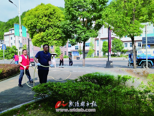 本報訊(記者 田丹 文/圖)連日的高溫晴熱天氣,城市里的花草樹木面臨著嚴峻“烤”驗。為補水保苗,給城市綠植“解渴降溫”,8月8日在黔江區正陽民族廣場的綠化帶,黔江區城投集團機關黨支部與博通公司黨支部聯合開展了“抗旱保苗、黨員先行”主題黨日志愿服務活動。
