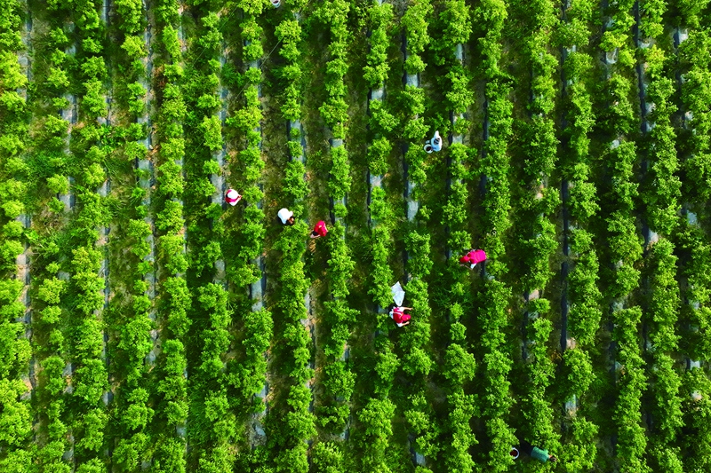 村民頂著烈日采摘