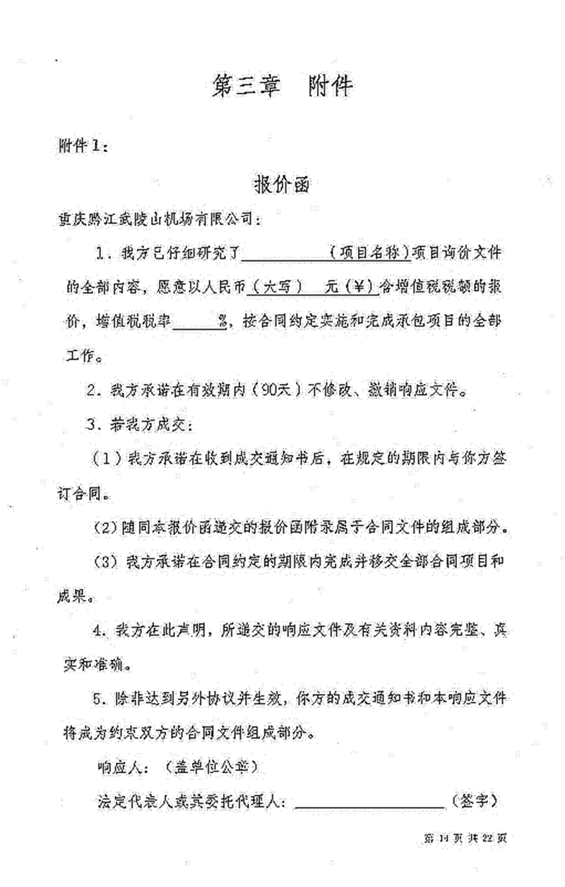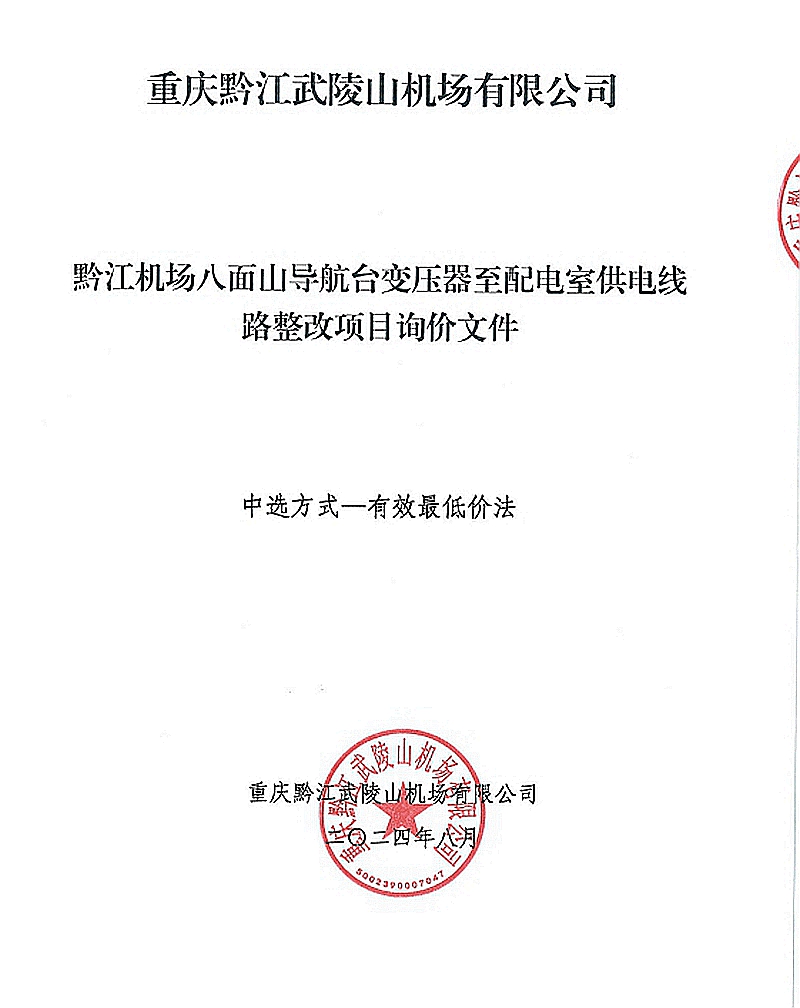 重慶黔江武陵山機(jī)場有限公司黔江機(jī)場八面山導(dǎo)航臺變壓器至配電室供電線路整改項(xiàng)目詢價文件