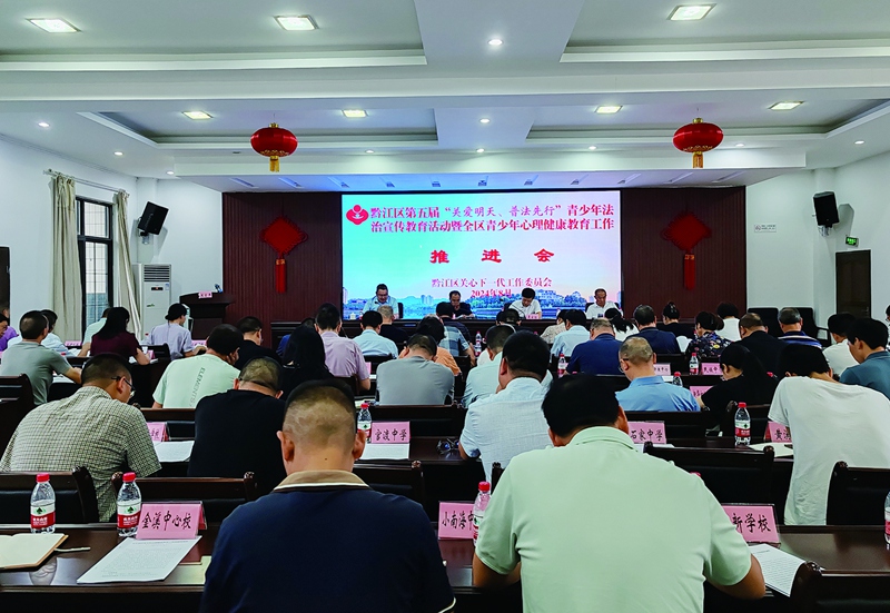 本報訊(記者 田丹 文/圖)為推進全區青少年法治宣傳教育活動,有效促進青少年健康成長,推動全區青少年心理健康教育工作全面發展,8月28日,黔江區第五屆“關愛明天、普法先行”青少年法治宣傳教育活動暨全區青少年心理健康教育工作推進會在區委老干部局召開(如下圖)。
