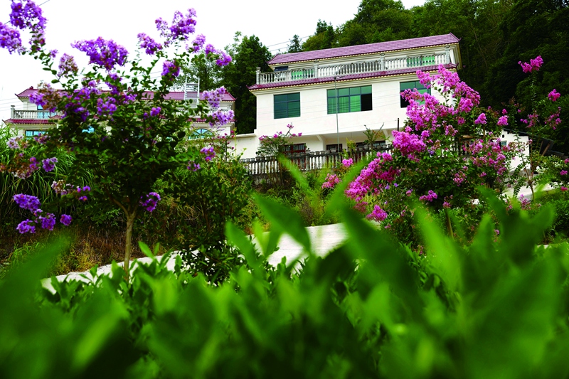初秋時節(jié),該村紫薇樹相繼開花,把茶園、農(nóng)家、山巒和公路掩映成一幅畫卷,美不勝收。