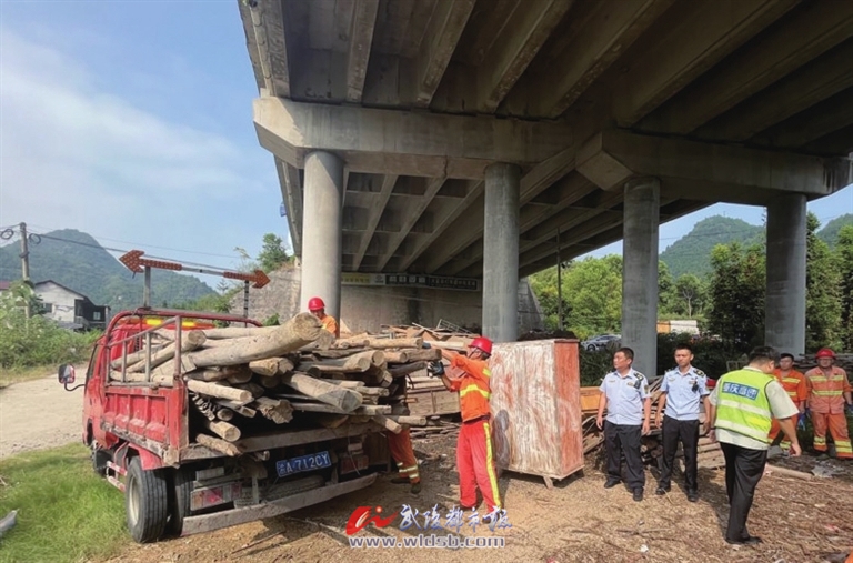 前期,執法人員對橋下空間開展專項巡查中發現,花垣河大橋下被附近居民存放多處雜物、建筑木材等。該行為在高溫汛期給橋梁及公路運行帶來較大隱患。