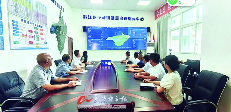 中塘鎮(zhèn)基層治理指揮中心工作人員通過(guò)大屏了解實(shí)時(shí)情況