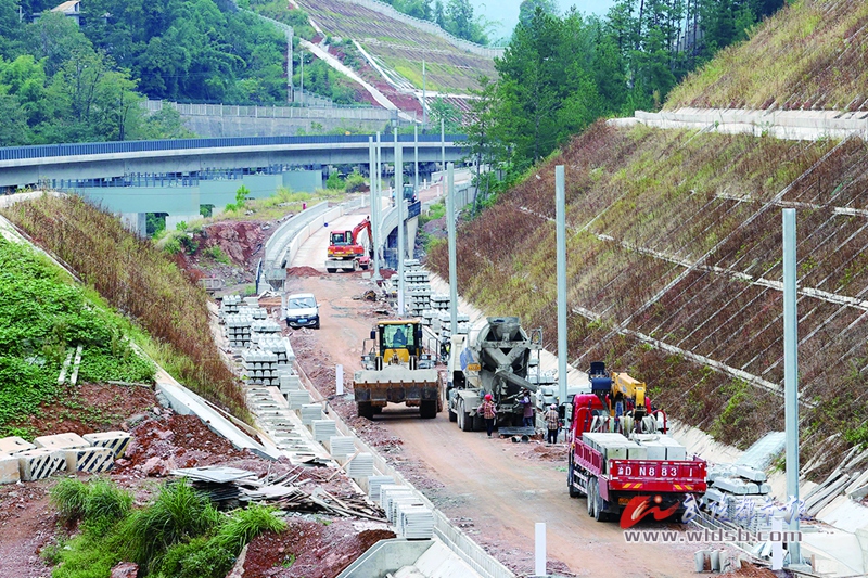 10月3日,工人在渝湘高鐵重慶主城至黔江段正陽街道積富社區(qū)段工地施工。