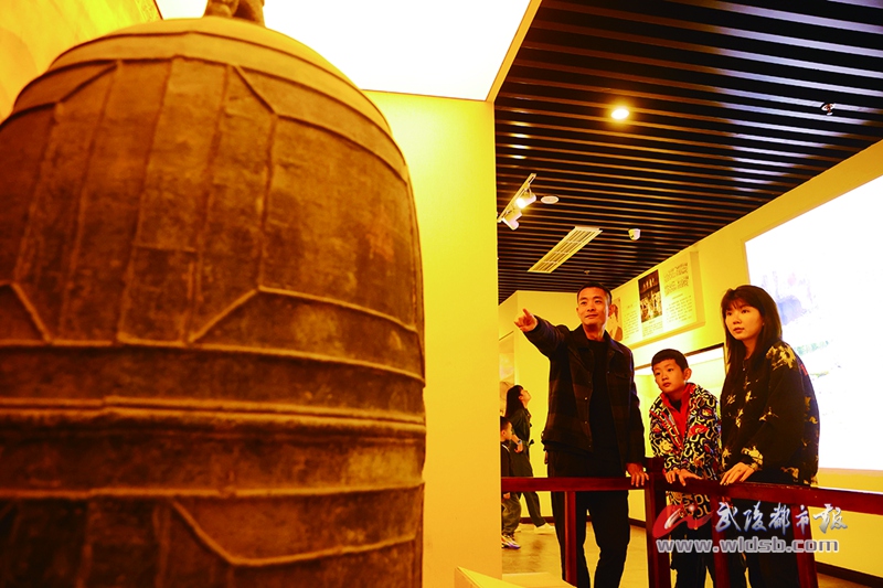 10月6日,位于黔江區(qū)的重慶市民族博物館內(nèi),家長帶著小朋友參觀唐鐘。