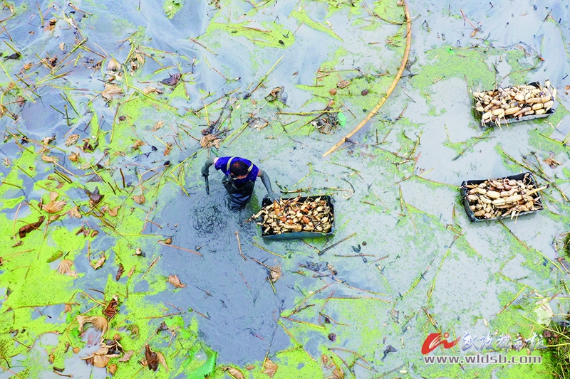 10月4日,五里鎮(zhèn)甘溪村村民在采挖蓮藕。