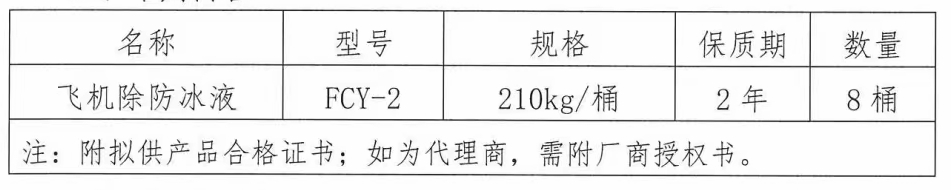 黔江機(jī)場擬采購飛機(jī)除防冰液,現(xiàn)進(jìn)行公開詢價,歡迎符合條件的單位參與競選。