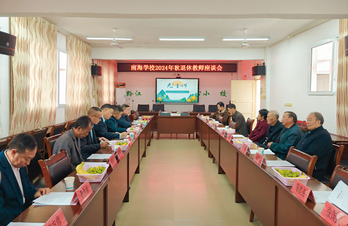 會上,校領導向各位退休教師匯報了近一年以來學校的工作情況和取得的成績。隨后,3名退休教師發表了自己的觀點,徐聲剛老師說:“南海學校的教育教學成績顯著,領導班子傾力作為,管理有度,教師認真負責,學生沒有過度流失,家長滿意度高,讓人很放心?!睆垏淅蠋煴硎荆骸皩W校領導班子團結,有大局觀、識大體,有長遠規劃。全體教師在教育教學方面的敬業精神令人欽佩,教育教學取得的成績令人欣慰。”孫家茂老師衷心祝福:“希望南海學校的教育越辦越好!”
