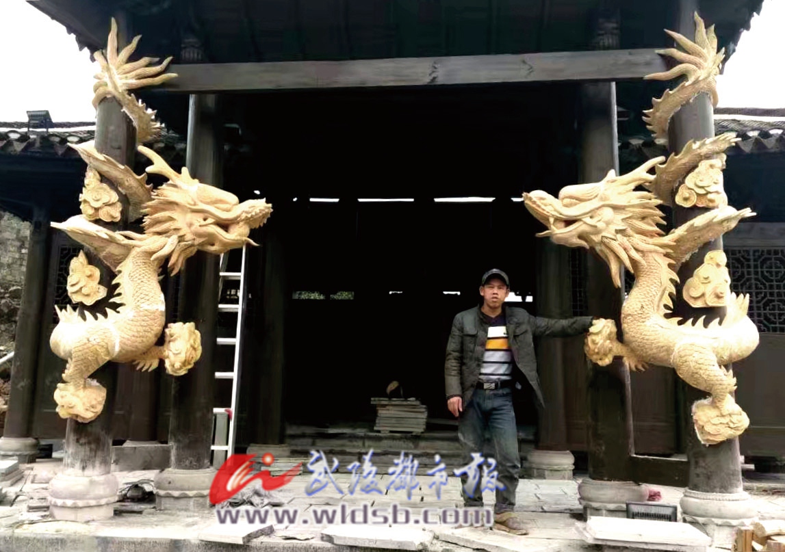當你行走在濯水古鎮、漫步于城區武陵水岸,走上長生橋時,門窗上、橋欄掛落及廊柱上的撐弓上面栩栩如生的雕花,難以想象這是出自一位殘疾人之手。這些建筑物上的雕花,為一座城市的地標建筑增添了一道古樸風味,讓城市風貌增光添彩。