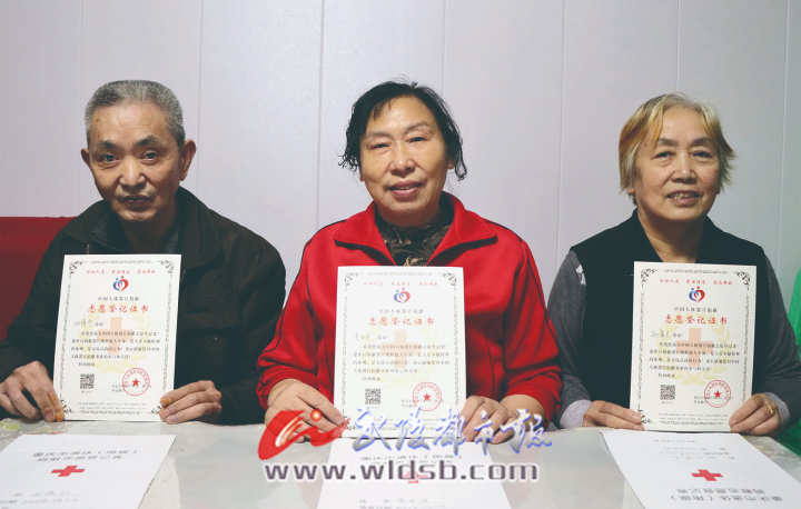 田德懷、高亞君、孫章蘭3位老人如愿登記成為中國人體器官捐獻志愿者,還得從今年3月5日這天說起。當天,黔江區紅十字會在紅軍廣場開展“學雷鋒紀念日”活動,志愿者向市民宣傳和講解紅十字會“三獻”工作,居住在附近的田德懷、高亞君、孫章蘭前往看熱鬧,了解到一個人在生命終結后,捐獻出的人體器官可以挽救更多人的生命,于是3人便現場登記填寫《人體器官捐獻志愿表》,愿意今后將遺體器官全部捐獻。