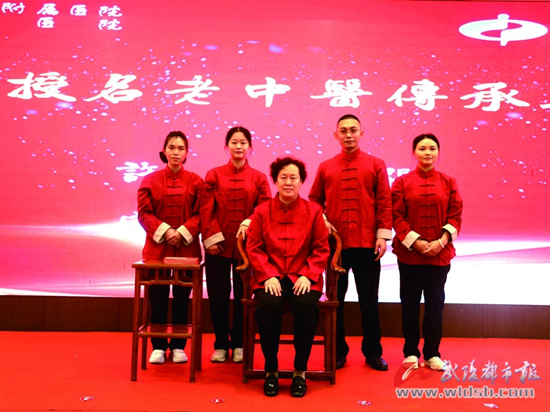 在“于娟教授名老中醫傳承工作站拜師儀式”現場,來自黔江區中醫院的4位青年醫生,以傳統方式向于娟教授行拜師之禮,正式成為于娟教授傳承弟子,于教授則以書籍與回徒帖相贈。