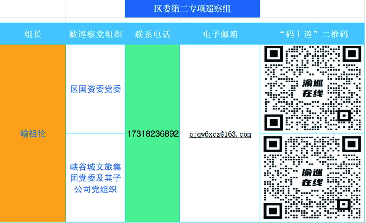本輪巡察期間設專門聯系電話、電子郵箱和“碼上巡”二維碼,主要受理反映被巡察單位領導班子及其成員、其他區管干部、下一級黨組織領導班子主要負責人和重要崗位干部問題的來信來電來訪,重點是關于違反政治紀律、組織紀律、廉潔紀律、群眾紀律、工作紀律、生活紀律等方面的舉報和反映。專項巡察組受理信訪時間截止到2024年12月20日。巡察結束后,相關問題反映渠道自行關閉。