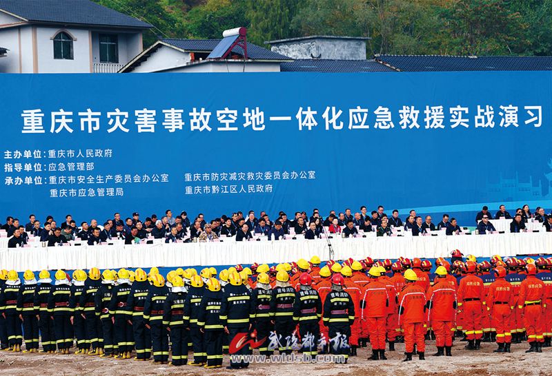 本報訊(記者 蔡肖霞 /文 首席記者 楊敏/圖)11月29日,“生命至上·2024”重慶市災害事故空地一體化應急救援實戰演習在黔江區濯水鎮舉行(如圖)。應急管理部救援協調和預案管理局副局長王玉卿作點評總結,市政府副秘書長全偉出席并講話,市應急管理局局長宋平主持演習,黔江區委書記羅成致辭,武警重慶總隊大校副司令員程翔,陸軍勤務學院國家救災應急裝備工程技術研究中心大校趙翔,重慶警備區戰備建設局大校黨康瑞,重慶市、四川省、云南省、貴州省等西部12省(自治區、直轄市)以及新疆生產建設兵團應急管理廳(局)相關負責同志,市安委會、市防減救災委成員單位、各區縣人民政府有關負責同志,區領導張志鋒等參加。