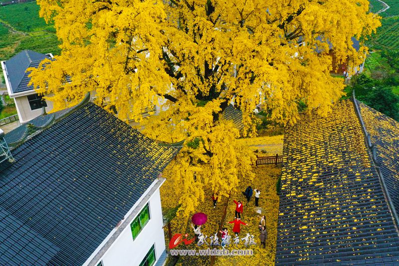 黔江區小南海鎮橋梁村與湖北省咸豐縣大路壩區大路壩村結合部是“犬牙交錯”的“插花地”,生長在這里的兩棵古銀杏成為守護兩地的“風景樹”和鄉村旅游點。每年初冬時節,兩棵古銀杏樹金黃的樹葉把渝鄂兩省市邊區的民居、田園、村道、小河點綴成一幅畫卷,吸引了兩地的游客前來打卡、游玩,陶醉其中。