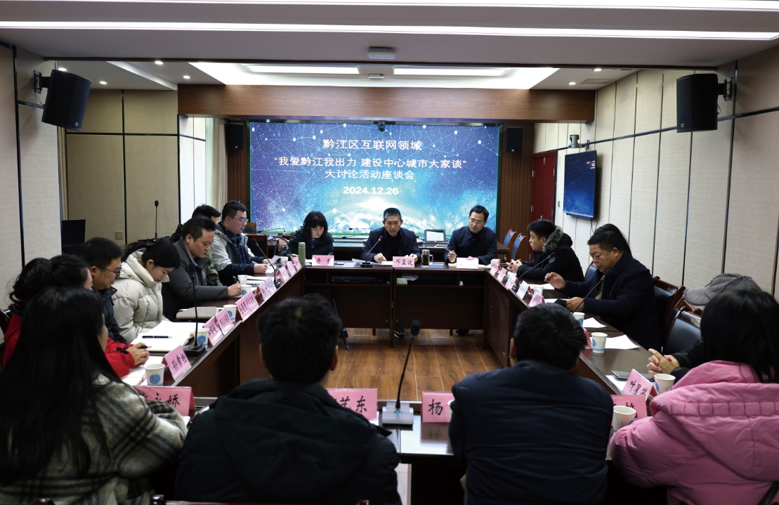 12月26日,黔江區委網信辦召開互聯網領域“我愛黔江我出力 建設中心城市大家談”大討論活動座談會,轄區重點互聯網企業負責人、網絡直播人士代表參加座談會。