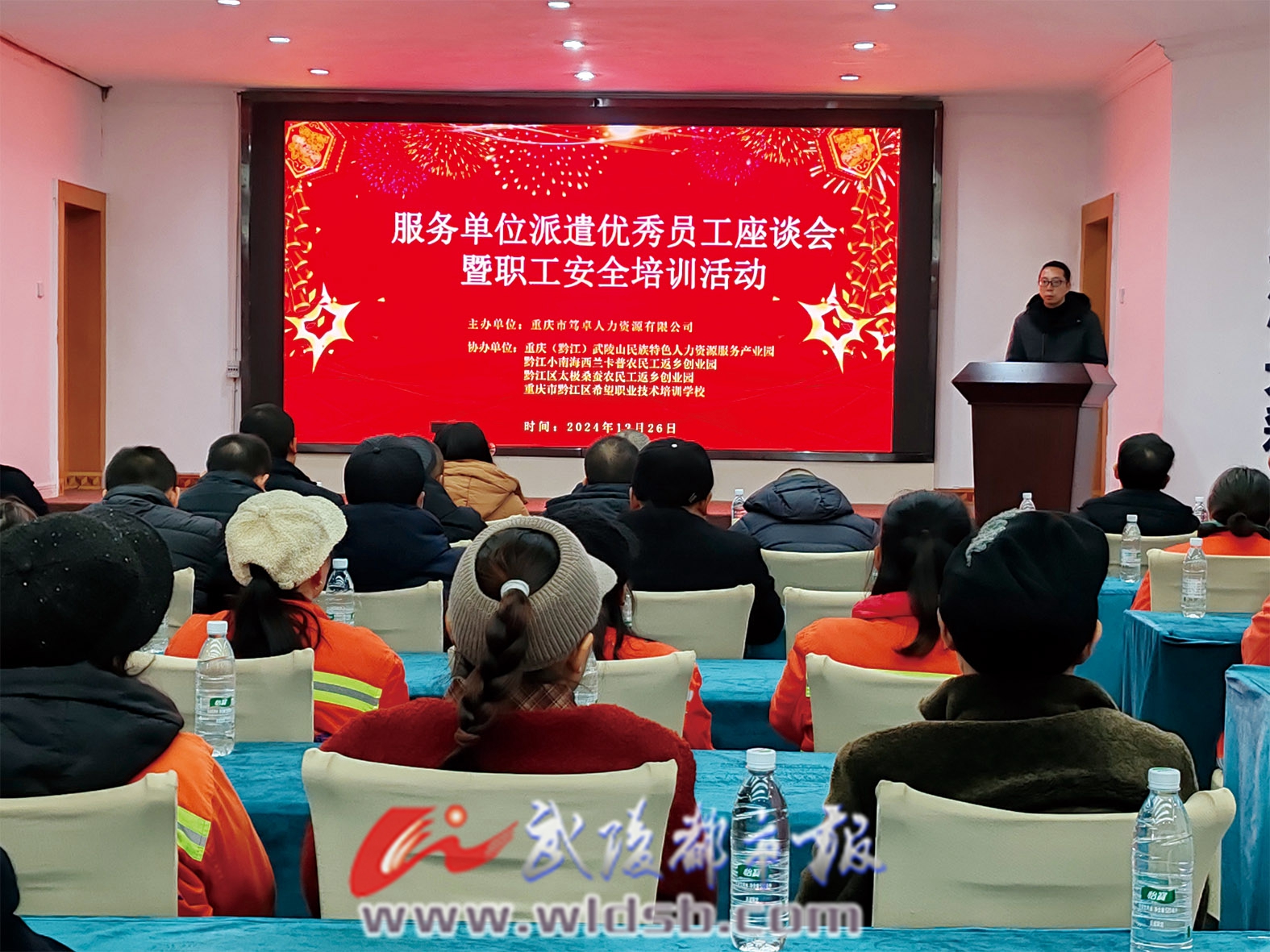 本報訊(記者 田丹 文/圖)為進一步提升服務質量,加強雙方在人力資源管理方面的深度交流與合作,深入了解派遣員工在工作中的實際狀況與需求,12月26日,重慶市篤卓人力資源有限公司舉行了服務單位派遣優秀員工座談會暨職工安全培訓活動。
