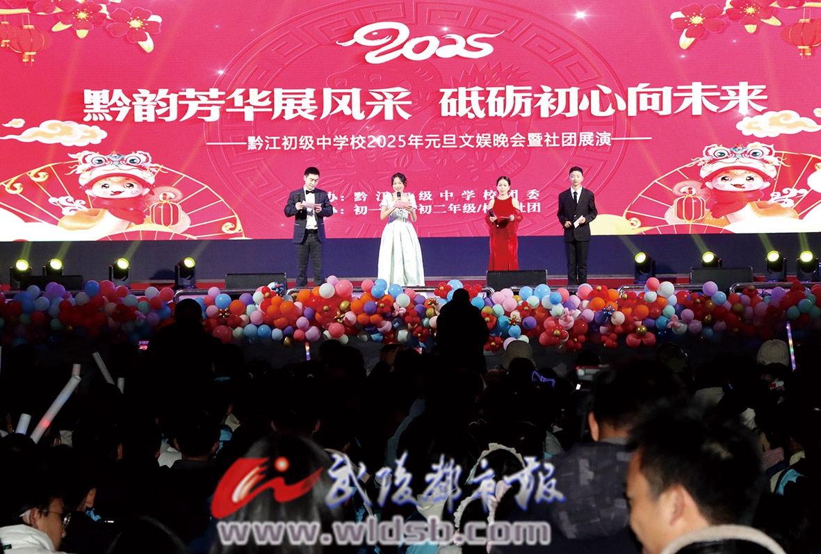 12月29日,黔江初級中學舉辦2025年元旦文娛晚會暨社團展演活動。由學校吉他社團、青春飛揚舞蹈社團等,帶來的精彩文娛節目表演,贏得舞臺下的師生及家長陣陣掌聲。