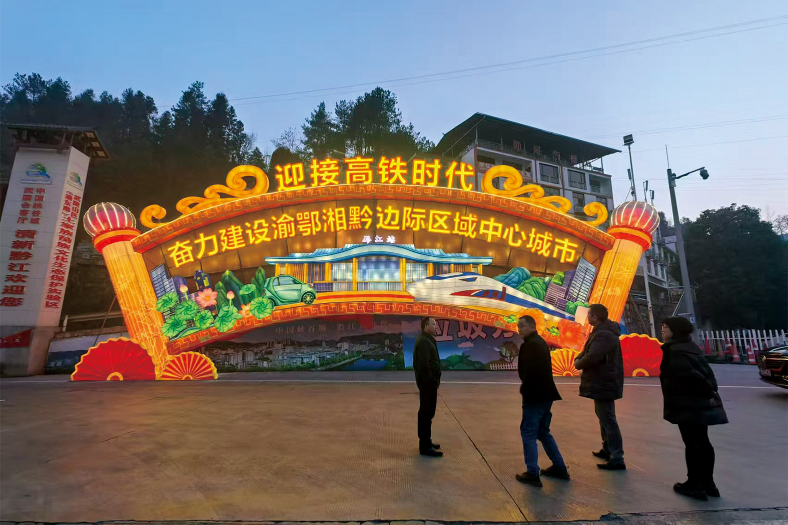 “火車站以及高速出口等位置,關于高鐵時代宣傳的燈飾非常顯眼,既扮靚了城區交通節點,又起到了宣傳黔江的作用。”市民李霞說,重慶到黔江高鐵即將開通,這些燈飾圖案很有紀念意義,吸引了大家前往“打卡”。