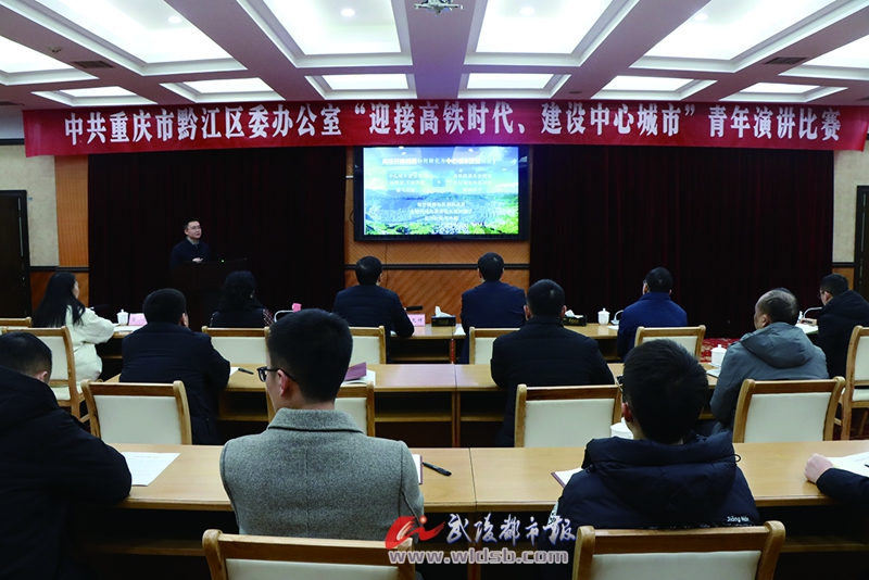 區(qū)委辦公室:1月5日,黔江區(qū)委辦公室開展“迎接高鐵時(shí)代 建設(shè)中心城市”青年演講比賽。19名參賽選手結(jié)合自身工作經(jīng)歷,用生動(dòng)的語言、鮮活的事例和飽滿的熱情,給大家?guī)砹艘粓鼍式^倫的視聽盛宴。