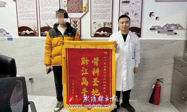 本報訊(記者 田丹 文/圖)近日,黔江民族醫院骨科上演了溫情一幕,一份承載著患者深厚感激之情的特殊禮物跨越千里送達。科室醫護人員從患者家屬手中鄭重接過一面錦旗,而這背后,是一段跨越地域、傳遞關愛的動人救治故事。